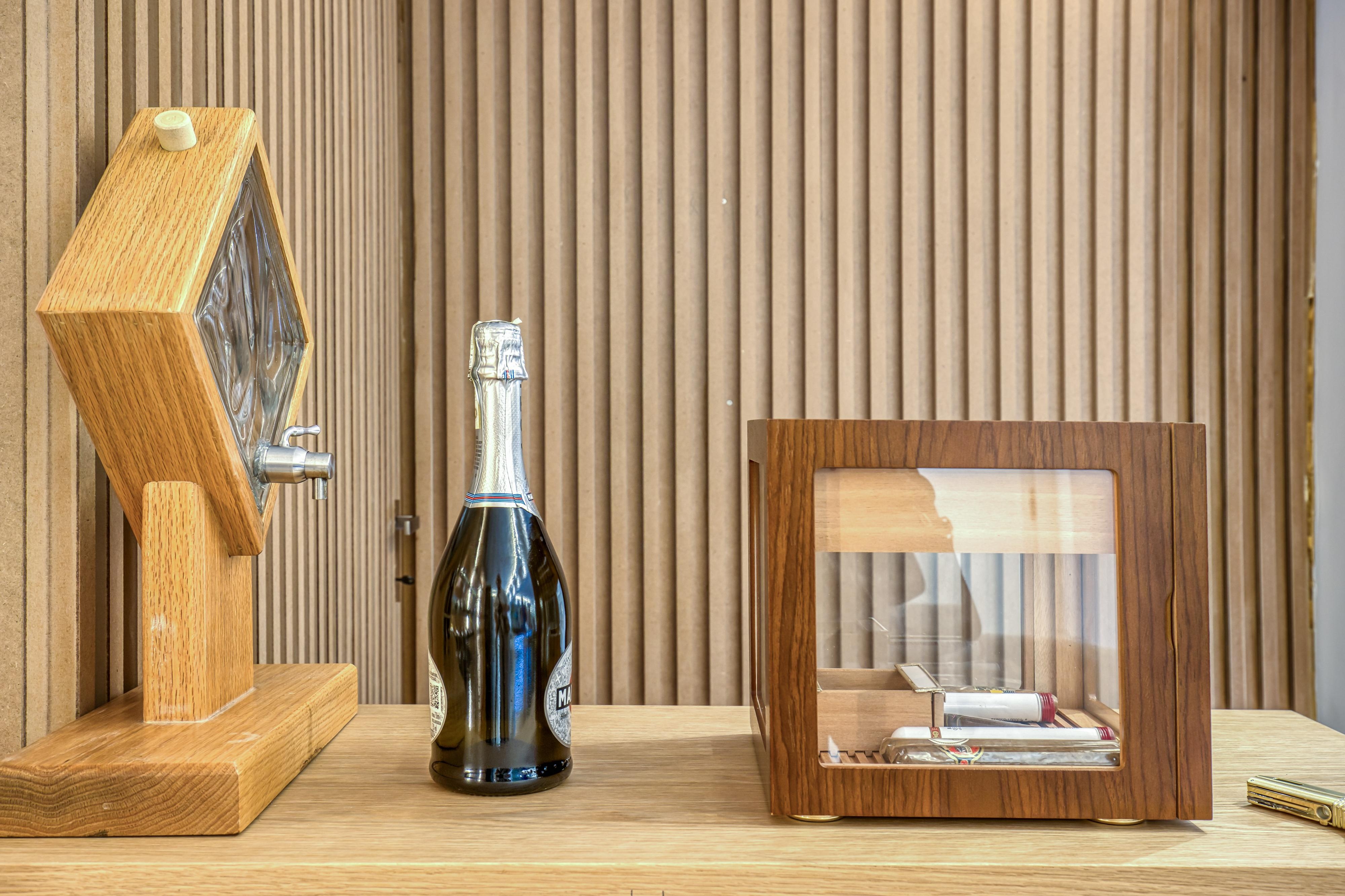 The villa's wine cellar features a curated collection of local and international wines. Guests are welcome to purchase selected bottles during their stay to enhance their evenings and special moments.