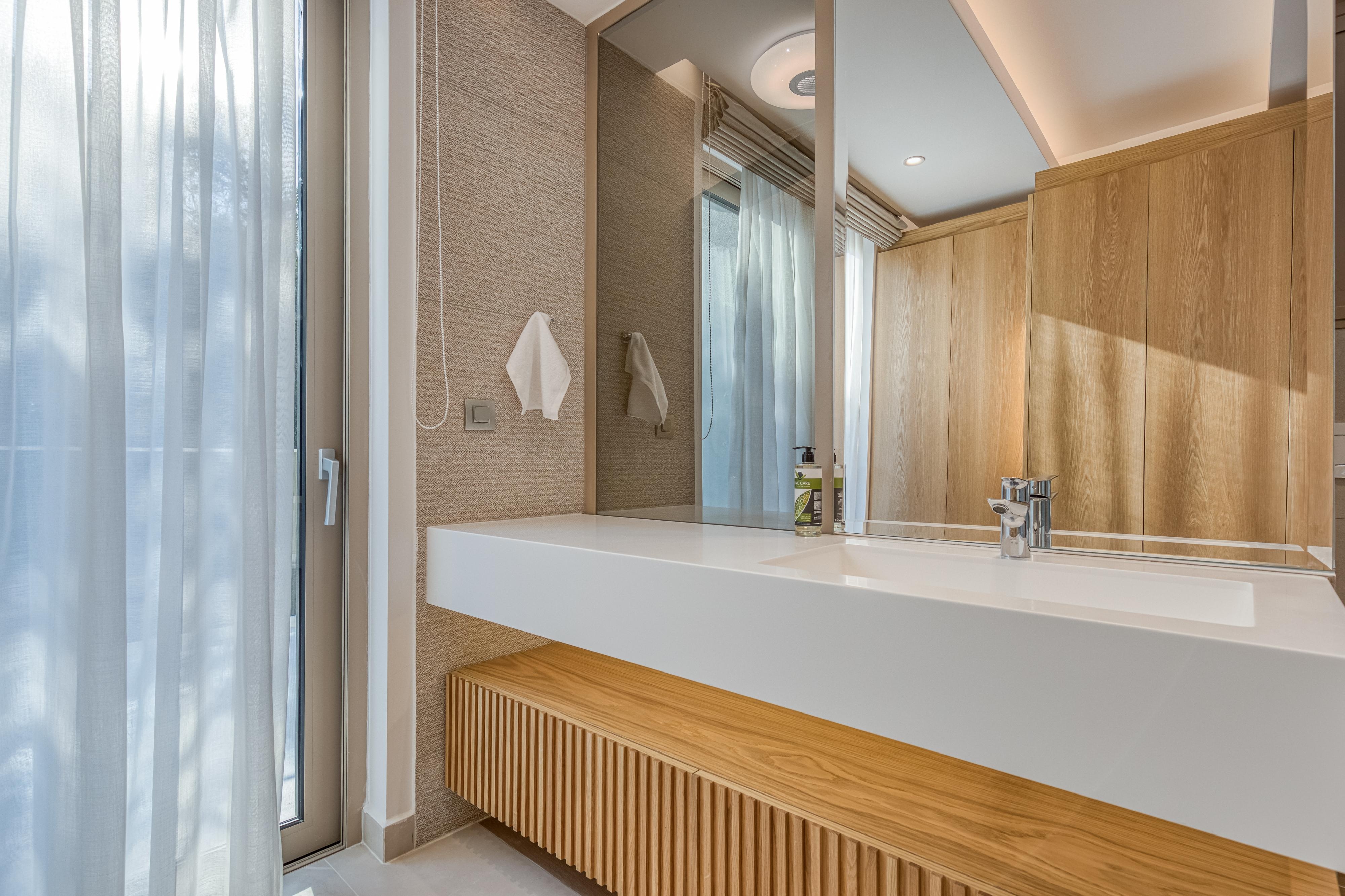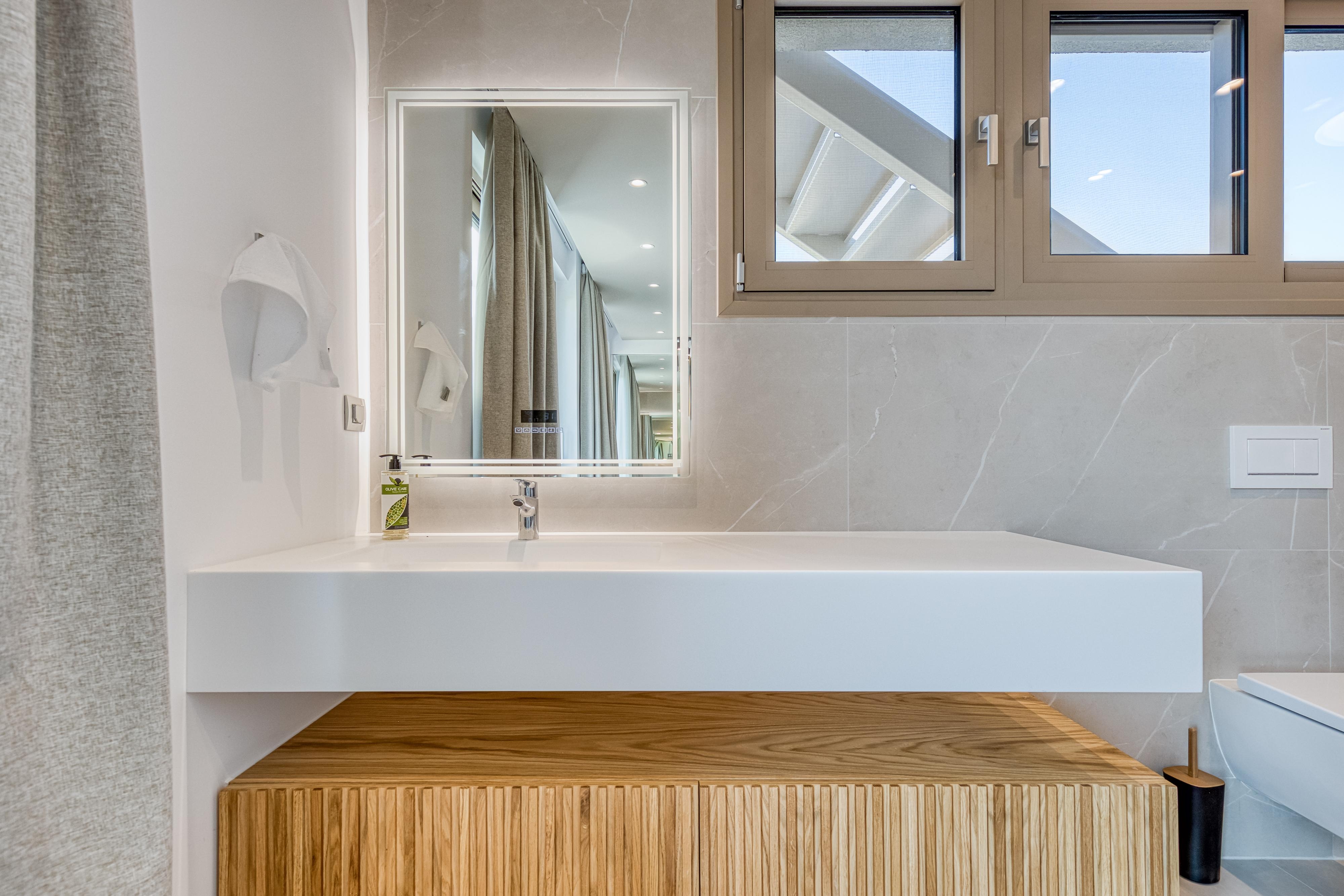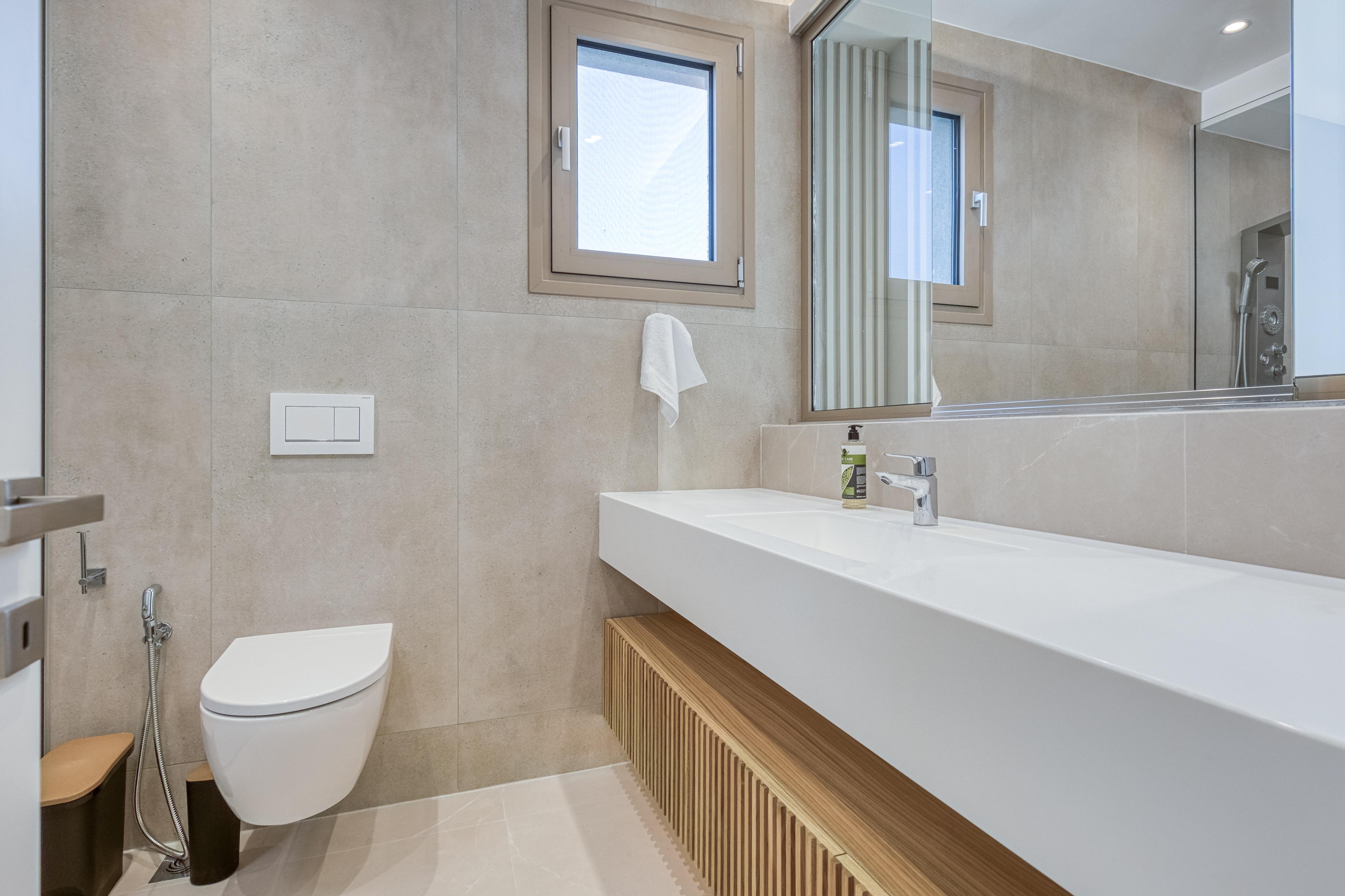 Enjoy high-speed WiFi6, multi-room sound systems (indoor and outdoor), smart TVs with Netflix and Disney+, underfloor heating and cooling, biometric security, reverse osmosis water purification, solar-powered systems, and fully automated climate and lighting controls. Daily maid service and linen changes are included for your convenience.