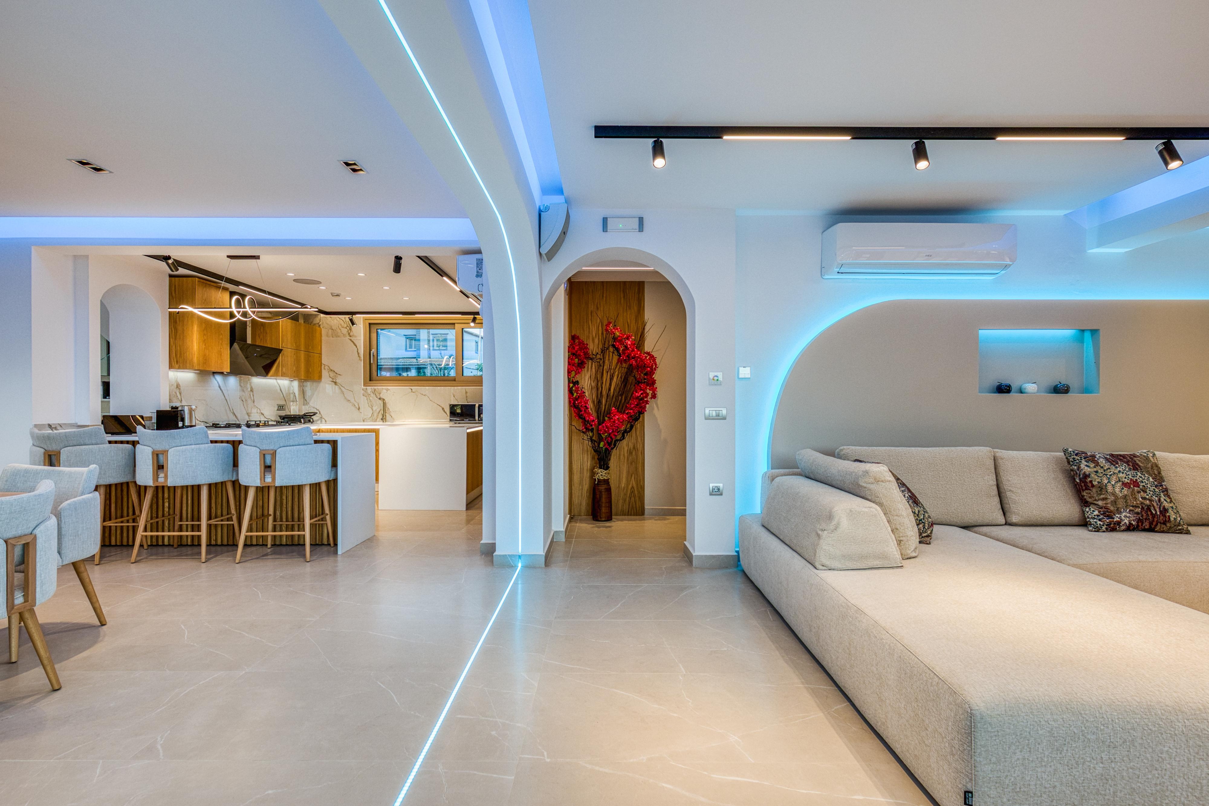 Welcome to Villa Stafida, a newly built architectural masterpiece nestled in the charming village of Kassiopi, just a 5-minute stroll to the main beach and a 10-minute walk to the village center. This elegant retreat blends modern luxury with Corfiot character, offering privacy, comfort, and cutting-edge smart home living for families, couples, or groups up to 12 guests.